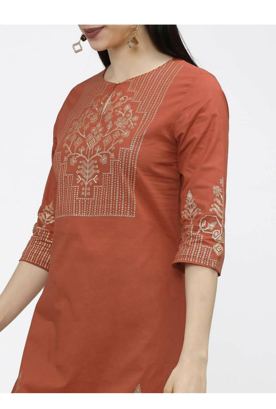 Cheera Embellished Daily Wear Cotton Blend Kurta - Brown - Distacart