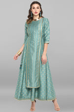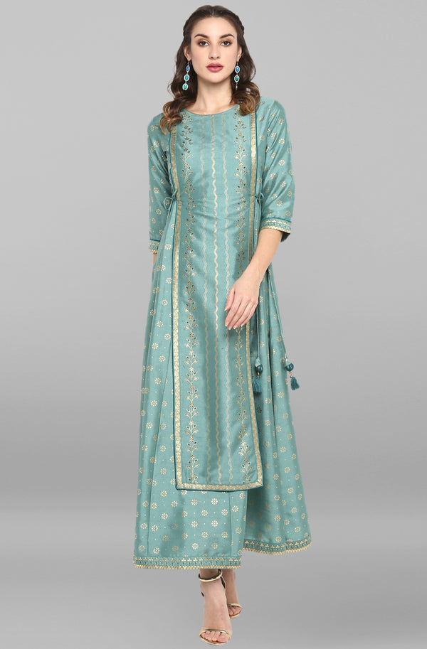 Janasya Green Rayon Crepe Foil Print Flared Ethnic DressAbout the Product: Color: Green Fabric: Rayon Crepe Pattern: Foil Print Occasion: Festi...