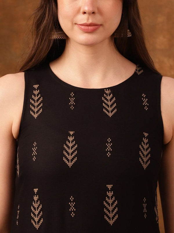 Anouk Black Ethnic Motifs Printed Sleeveless Straight Kurta - Distacart