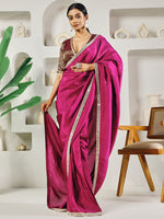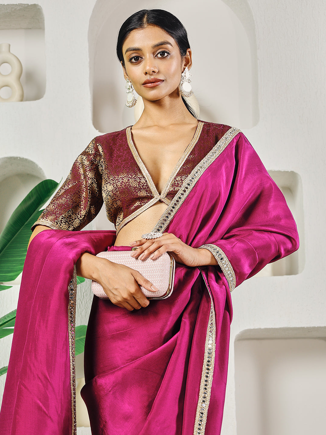 Fab Fashion Dark Purple Solid Ready to Wear Saree With Blouse