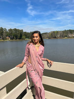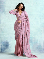 trueBrowns Light Mauve Printed Velvet Ready to Wear Saree