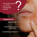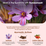 • Kumkumadi Sunscreen is a high-performance formula that not only protects against UV damage but also targets dullness and pigmentation. Enriched with SPF 60 and skin-brightening agents, it shields the skin from harmful rays while reducing the appearance of dark spots and uneven tone. Lightweight and non-comedogenic, it provides broad-spectrum protection without clogging pores.