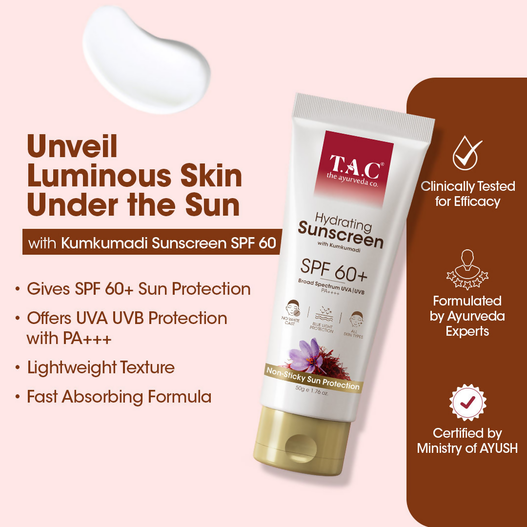 TAC - The Ayurveda Co. Kumkumadi Hydrating Sunscreen SPF 60+ PA++++About the Product:Kumkumadi Sunscreen is a high-performance formula that not onl...