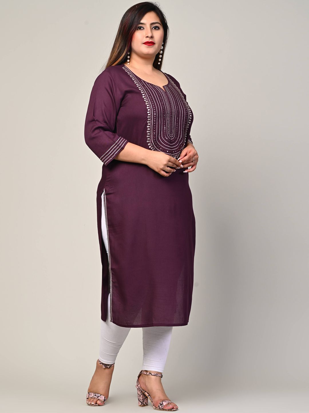 Swasti Women Purple Flared Sleeves Thread Work Floral Kurta - 5XL