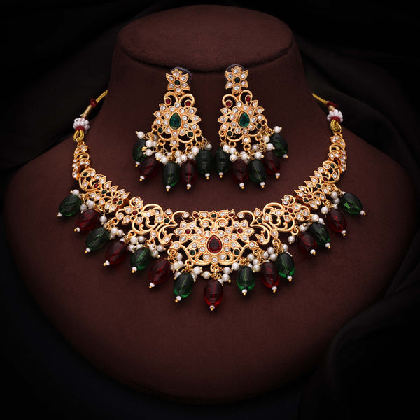 Tehzeeb Creations Gold-Polished Maroon Colour Necklace With Stud