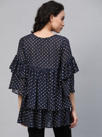Ahalyaa Women Navy Blue & Golden Polka Dots Print Tiered Beautiful Tunic