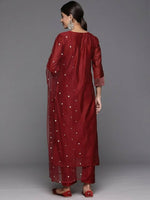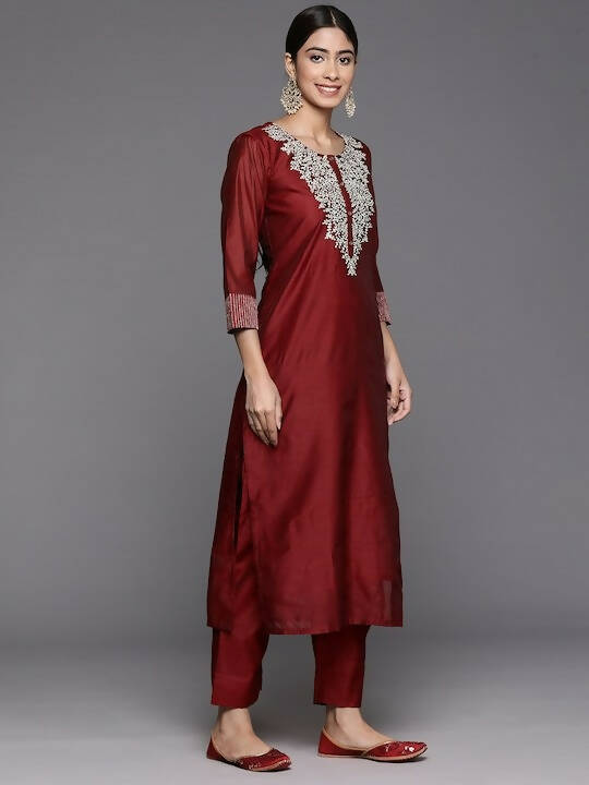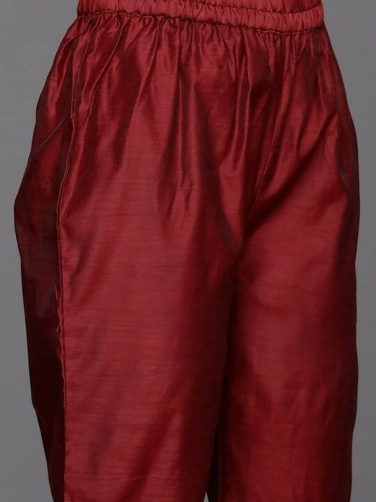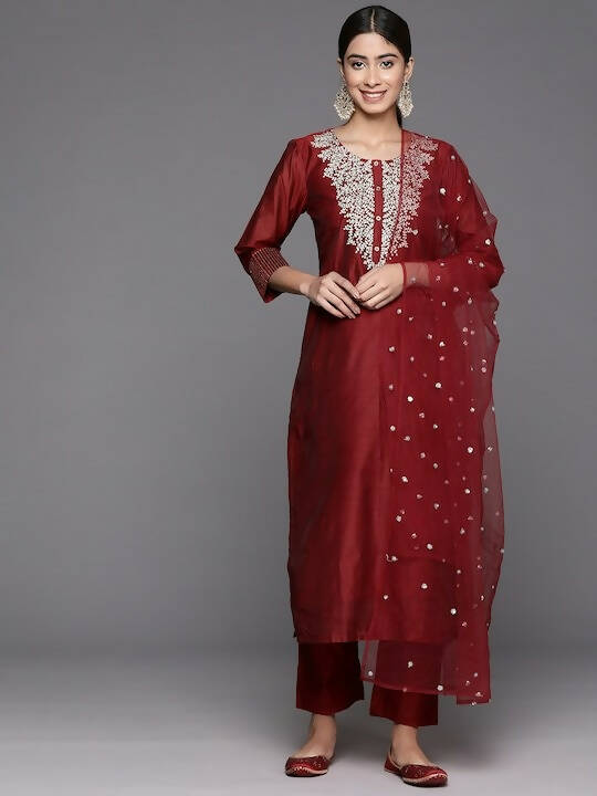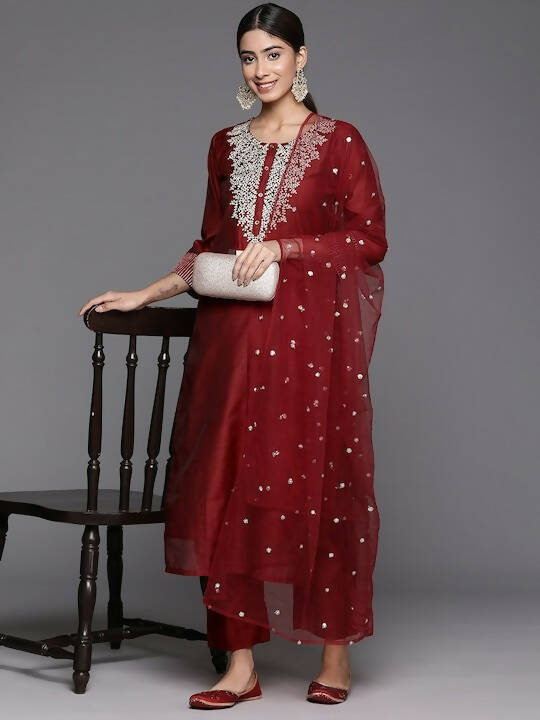 Varanga Floral Embroidered Regular Chanderi Silk Zari Kurta with Trousers & Dupatta - S