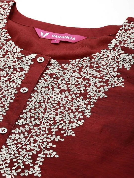 Varanga Floral Embroidered Regular Chanderi Silk Zari Kurta with Trousers & DupattaDescription: Kurta design: Floral embroidered Straight shape...