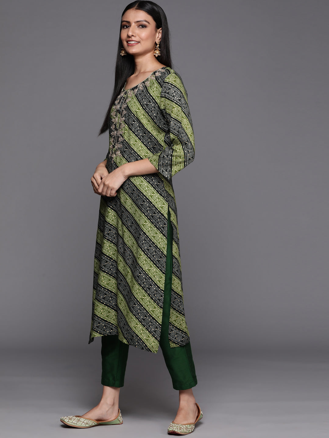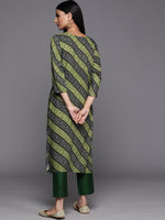 Varanga Green And Black Bandhani Printed Kurta With Embroidered Yoke