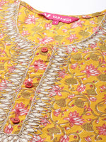 Varanga Mustard Floral Printed Kurta With Embroidered Neckline