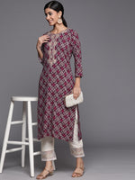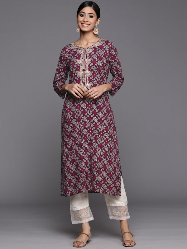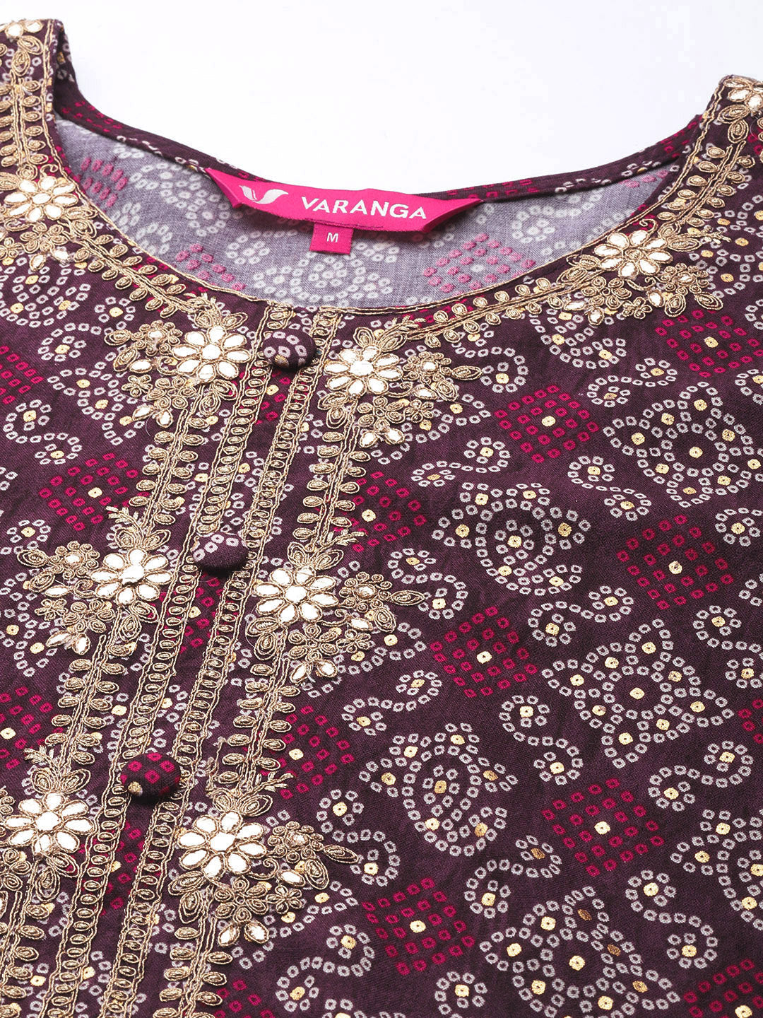 Varanga Violet Bandhani Printed Kurta With Embroidered Yoke - M