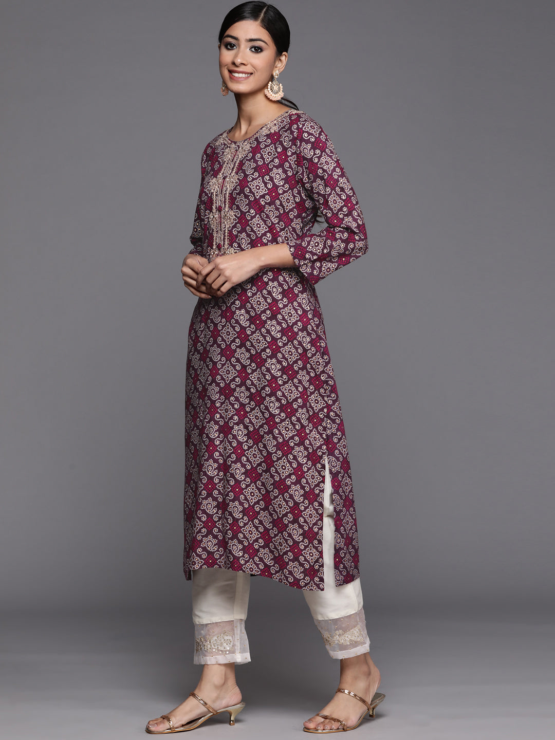 Varanga Violet Bandhani Printed Kurta With Embroidered YokeAbout the product:Violet bandhani printed kurta with embroidered yoke, kurta has round n...