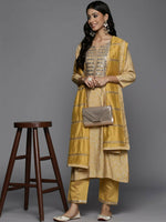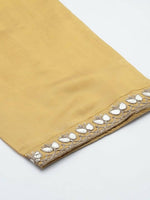 Varanga Women Mustard Yellow Printed Mirror Work Kurta with Trousers & Dupatta