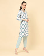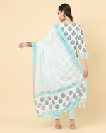 Varanga Women White Viscose Rayon Printed Regular Kurta With Trousers & Dupatta - S