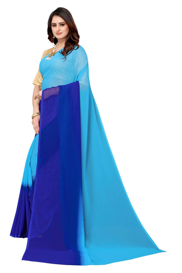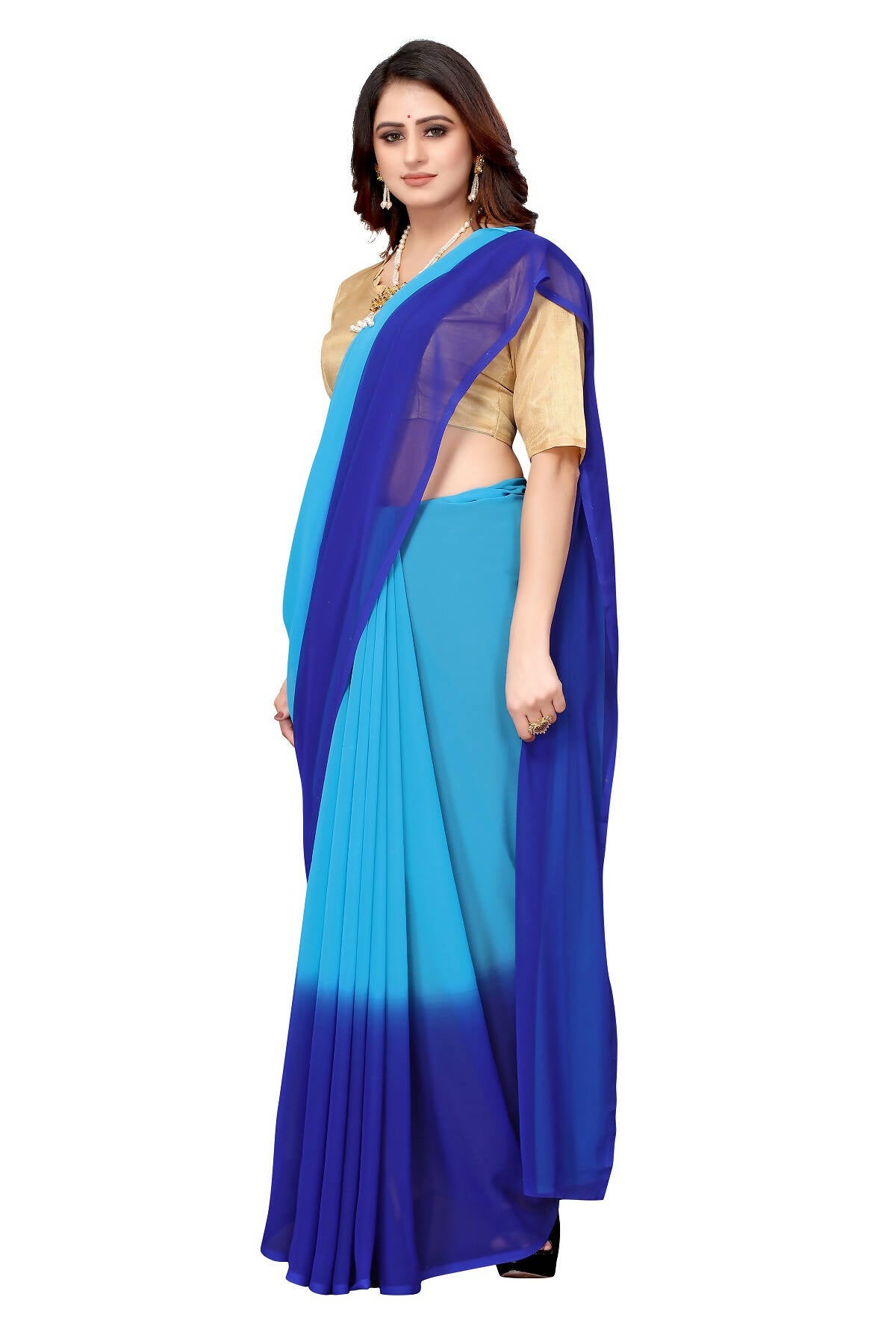 Vamika Blue Half N Half Georgette Saree Work: Half N Half Base Fabric: Georgette Fabric Saree: Georgette Fabric Blouse: Georgette Saree Size: ...