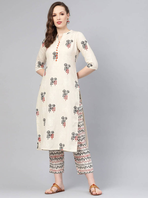 Vamika Printed Cotton Cream Party Wear/Casual Wear Kurta Set/Suit
