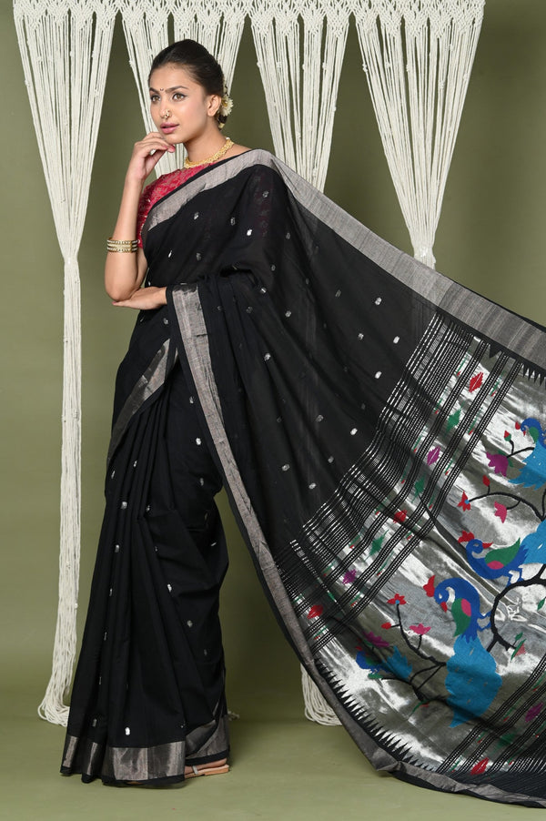 Handloom Pure Cotton Paithanis are classy and super stylish!! That gives you a break from regular sarees and makes you look elegant and royal, we would say a must have in your wardrobe and don't forget to share with us the compliments you get for this drape. Our Pure Cotton Paithani sarees come directly from the weavers of Maharashtra, yes we proudly support the local!!!.