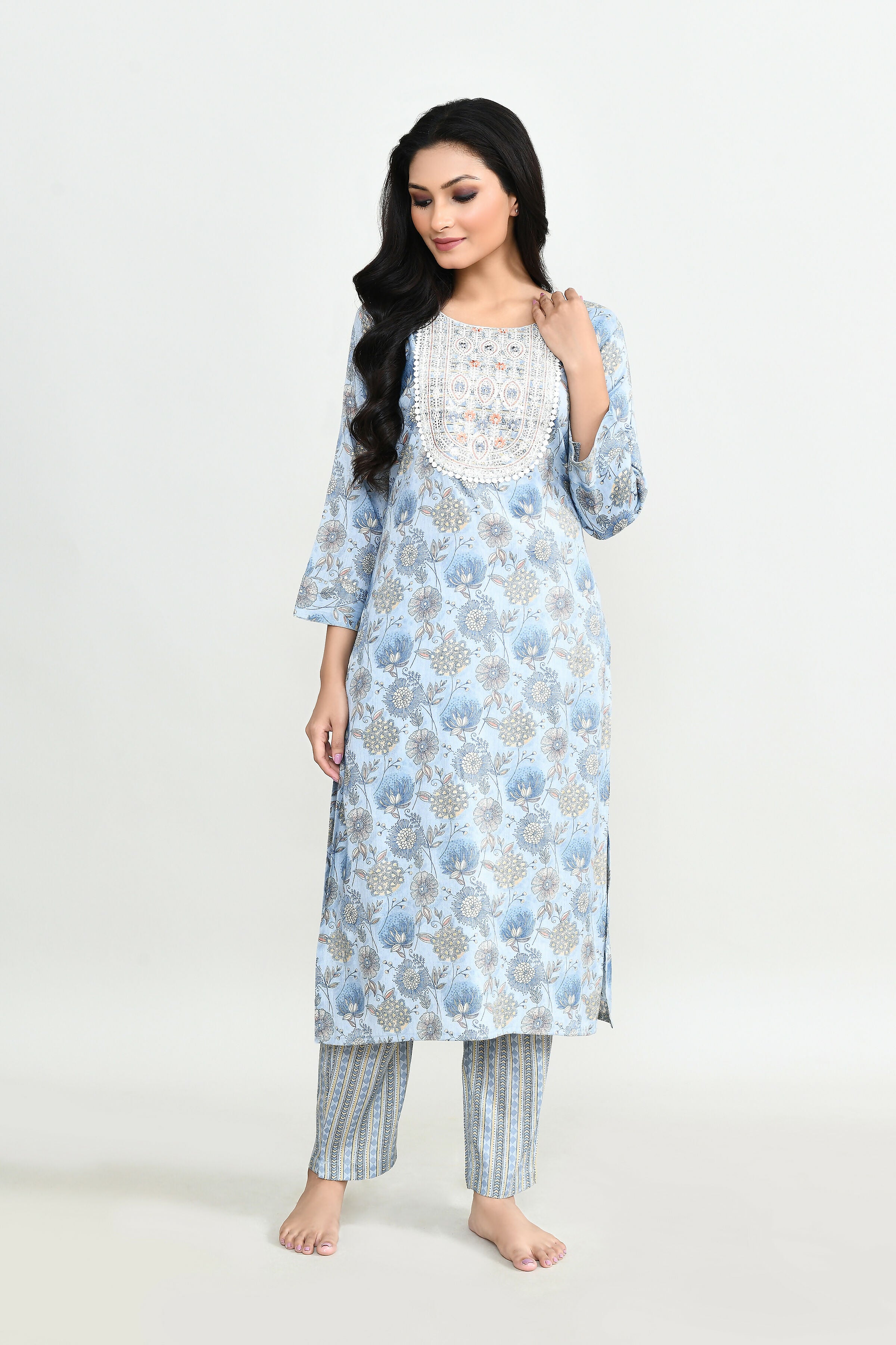 Joban Fashion Elegant Cotton Light Blue Kurta Set