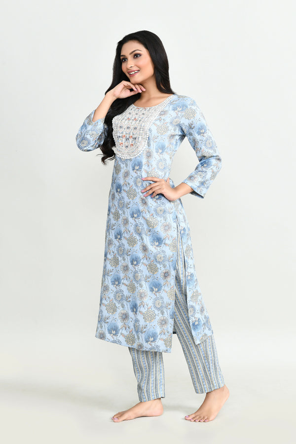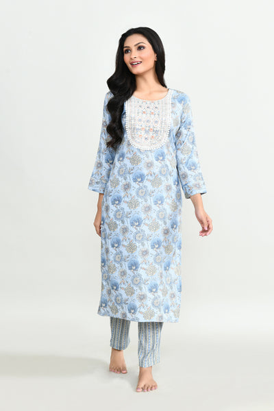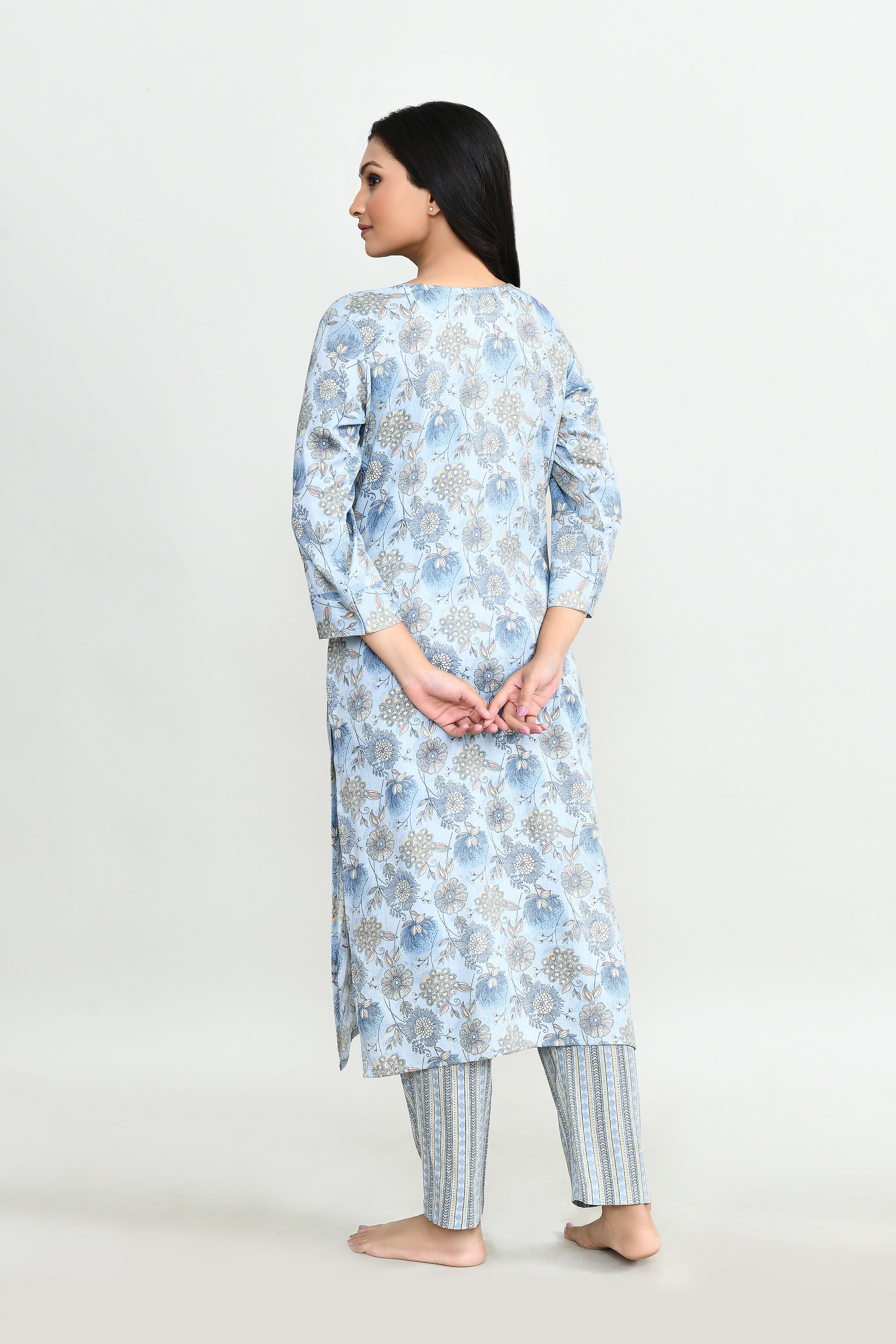 Joban Fashion Elegant Cotton Light Blue Kurta Set - S