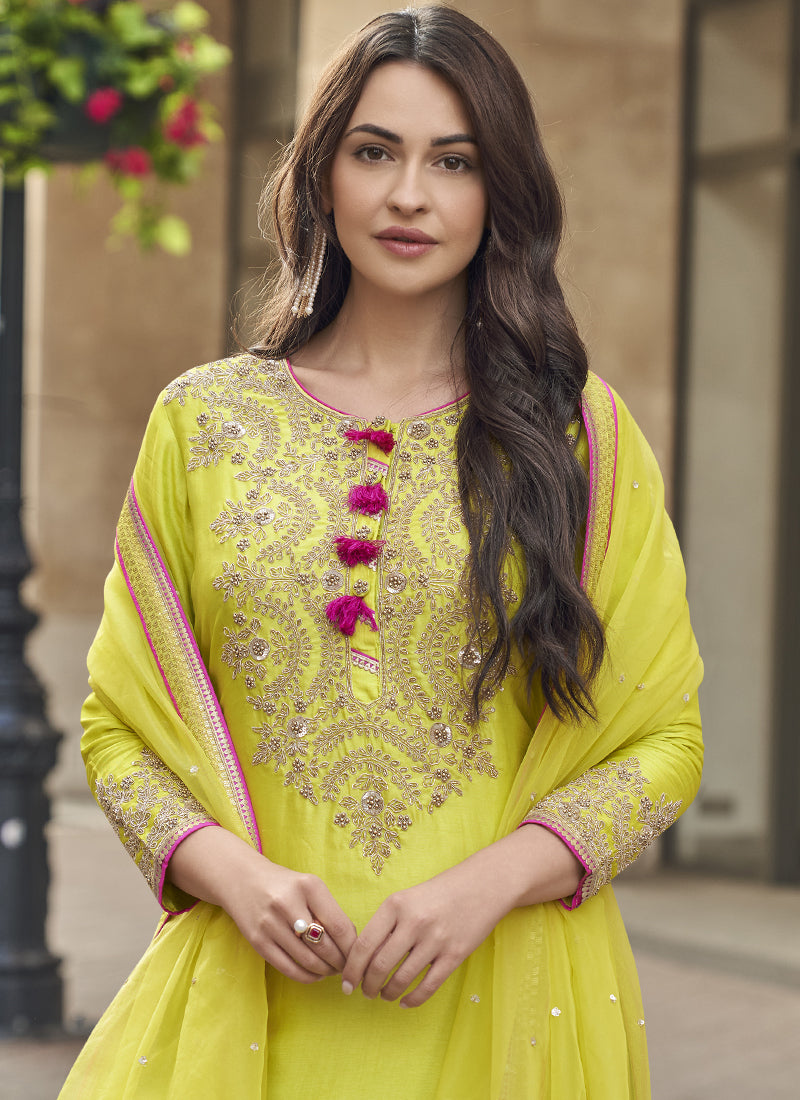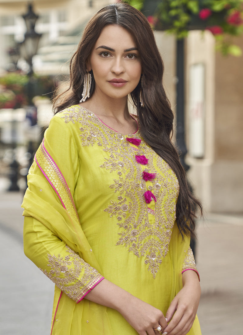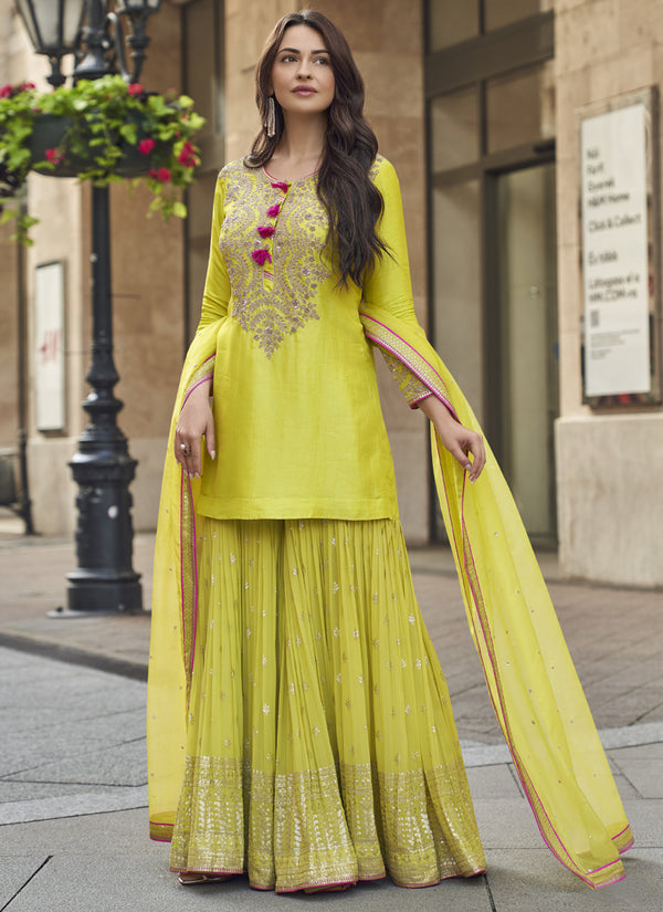 Vegaa Fashion Lime Green Premium Silk Embroidered Sharara Suit