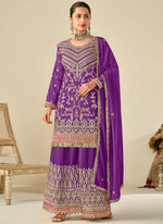 Vegaa Fashion Violet Premium Chinon Embroidered Palazzo Suit
