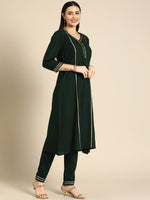 All About You Women Green & Gold-Toned Gotta Patti Kurta with Trousers & With Dupatta Product Details Green solid Kurta with Trousers wi...