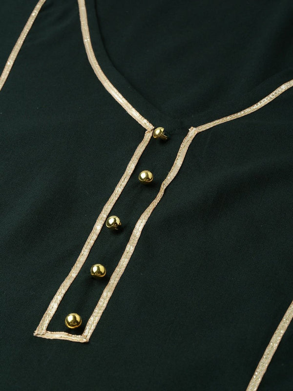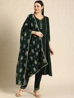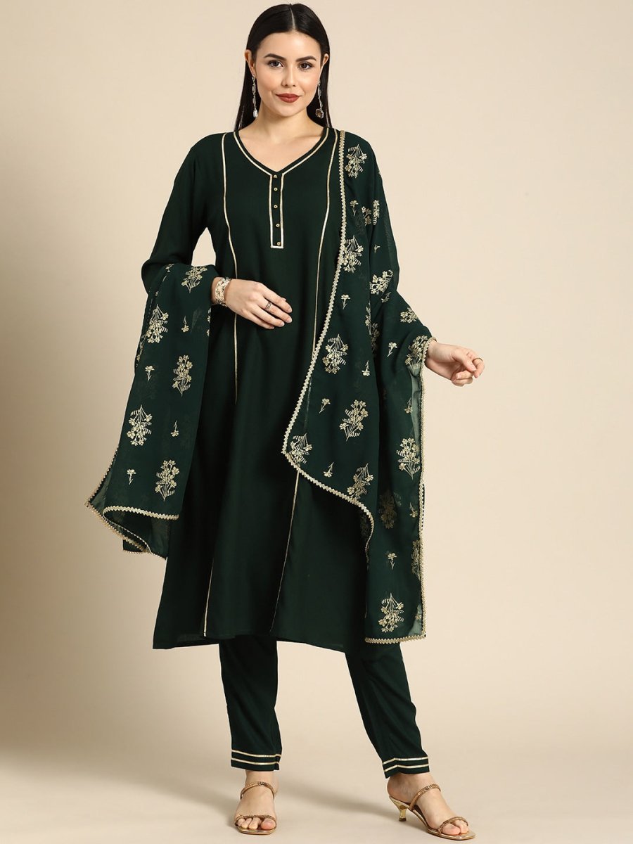 All About You Women Green & Gold-Toned Gotta Patti Kurta with Trousers & With Dupatta
