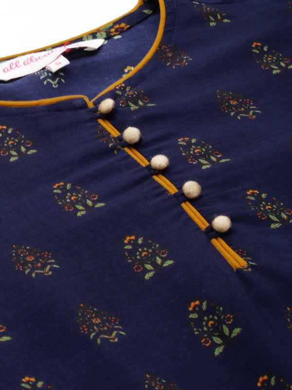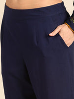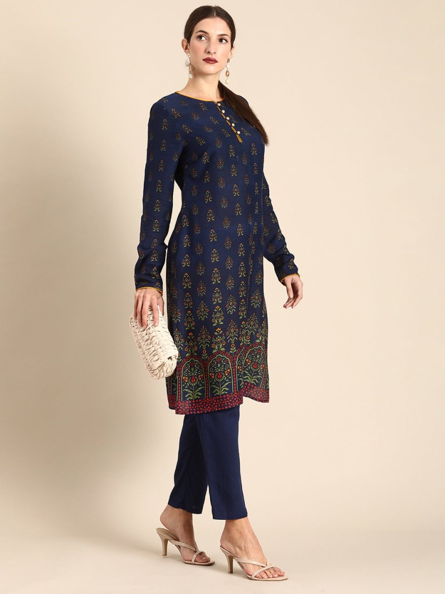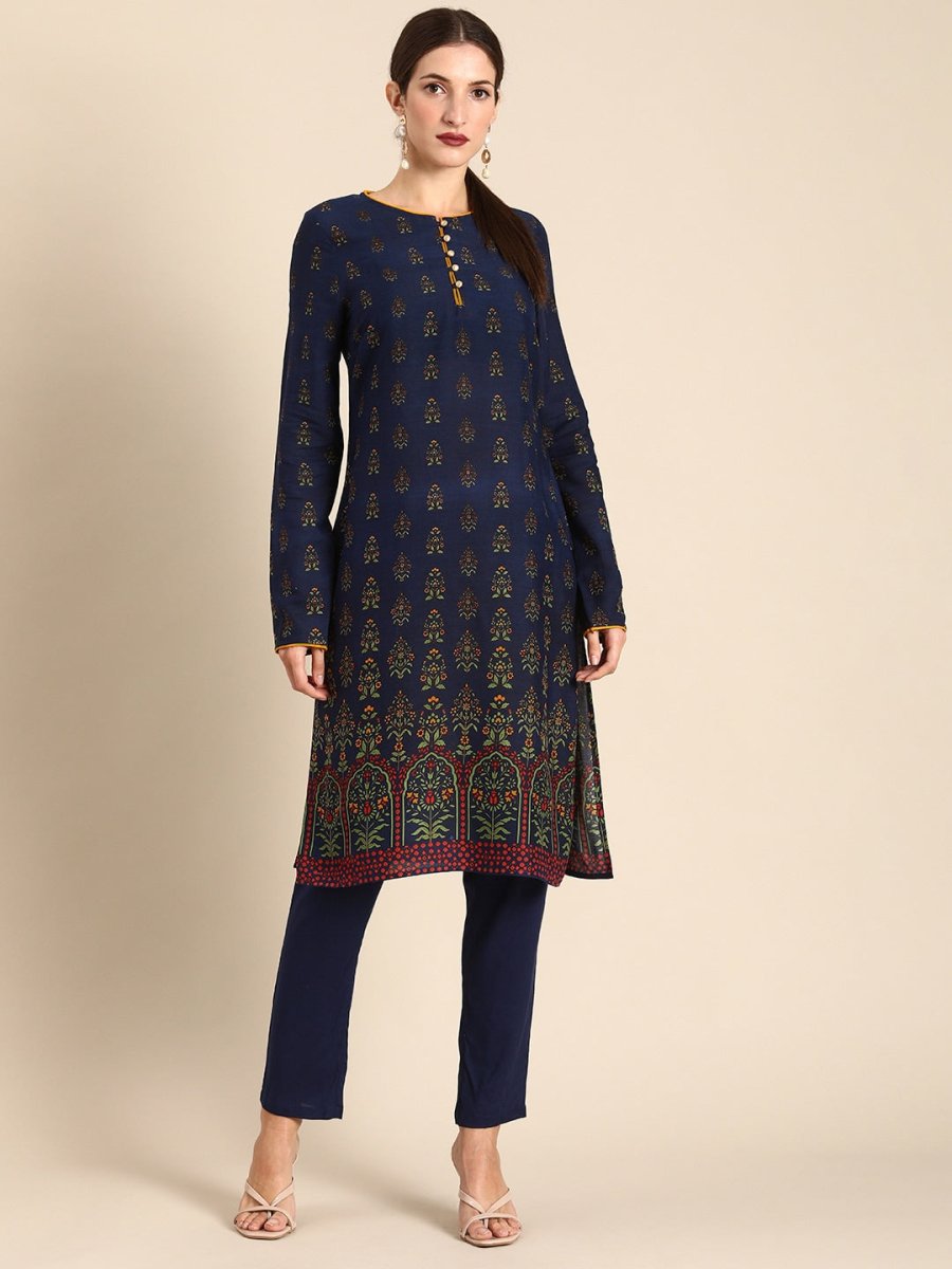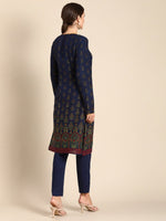 Navy blue printed Kurta with Trousers