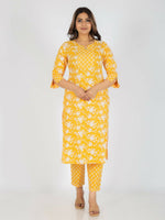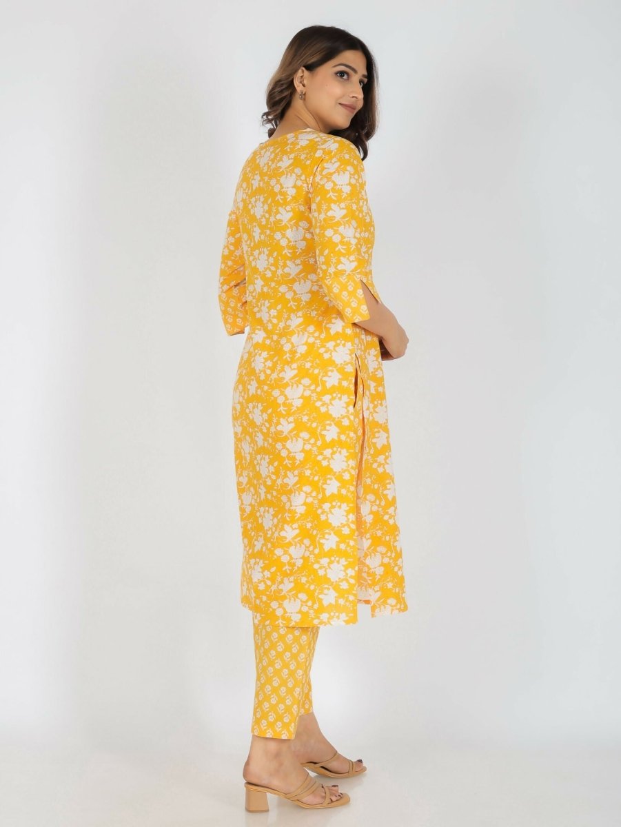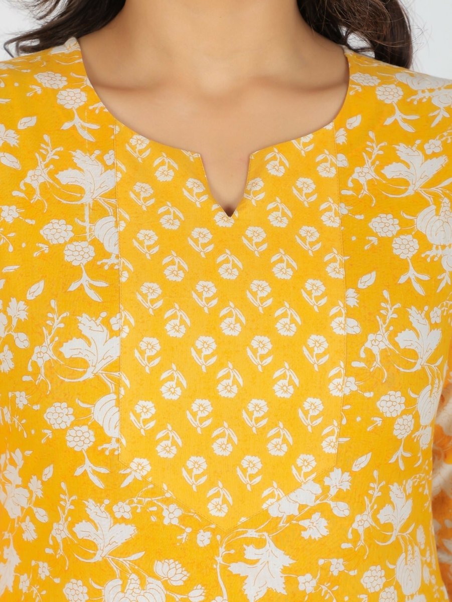 Aramya Yellow Soft Cotton Floral Print Straight Kurta Set for Women - M