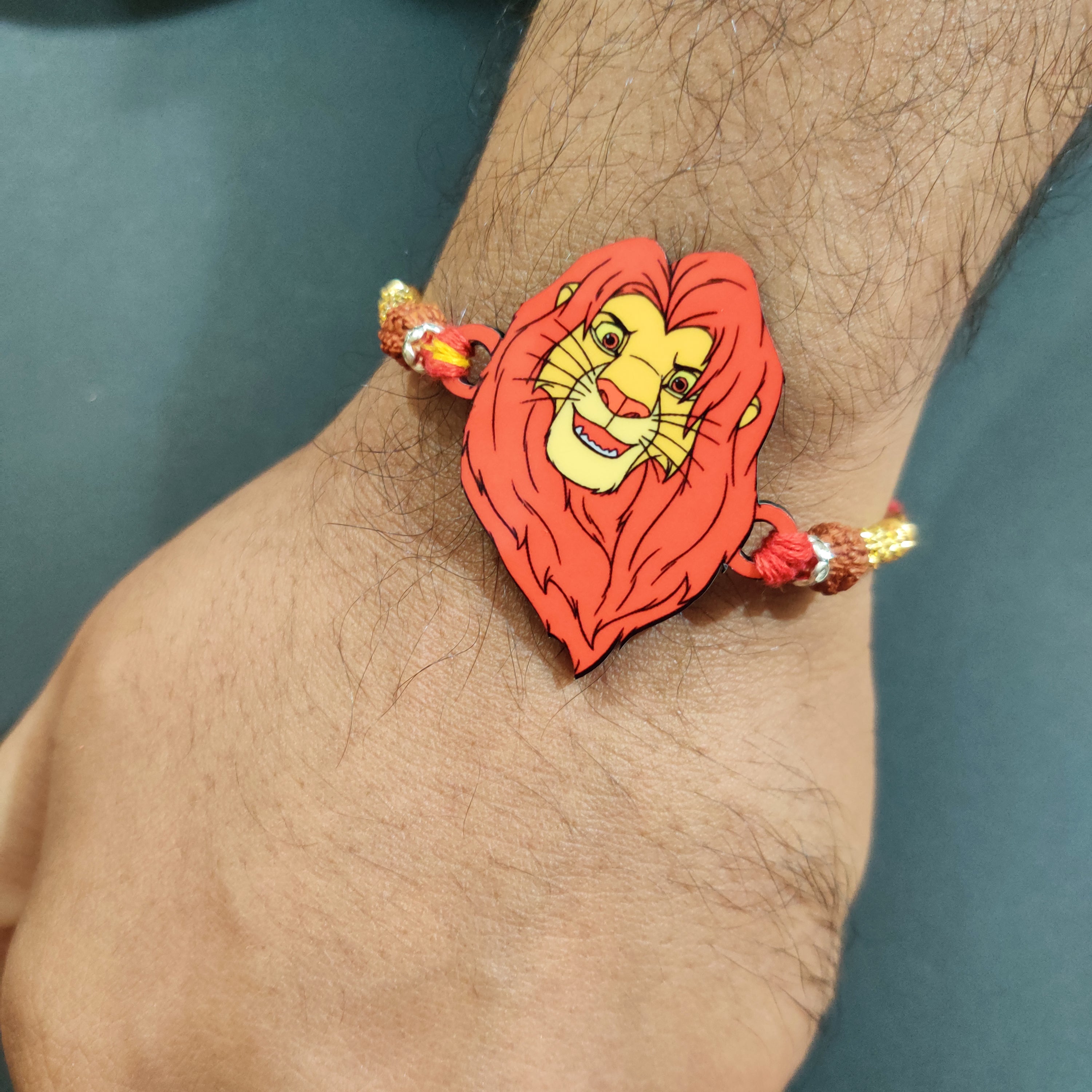 Indianvibez Mufasa Wooden Rakhi with Rudraksha, Lion King Rakhi for Brother, Shop India