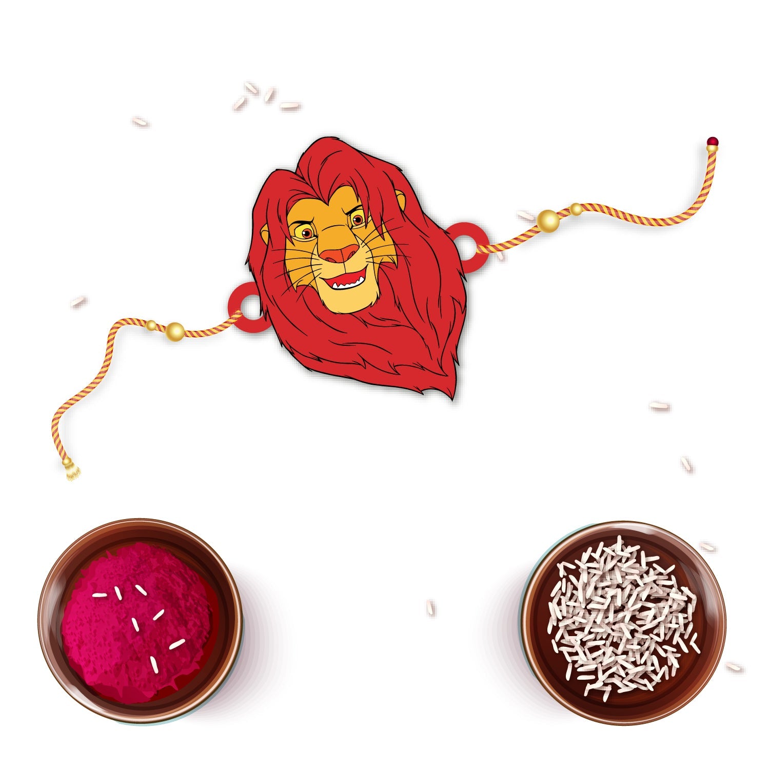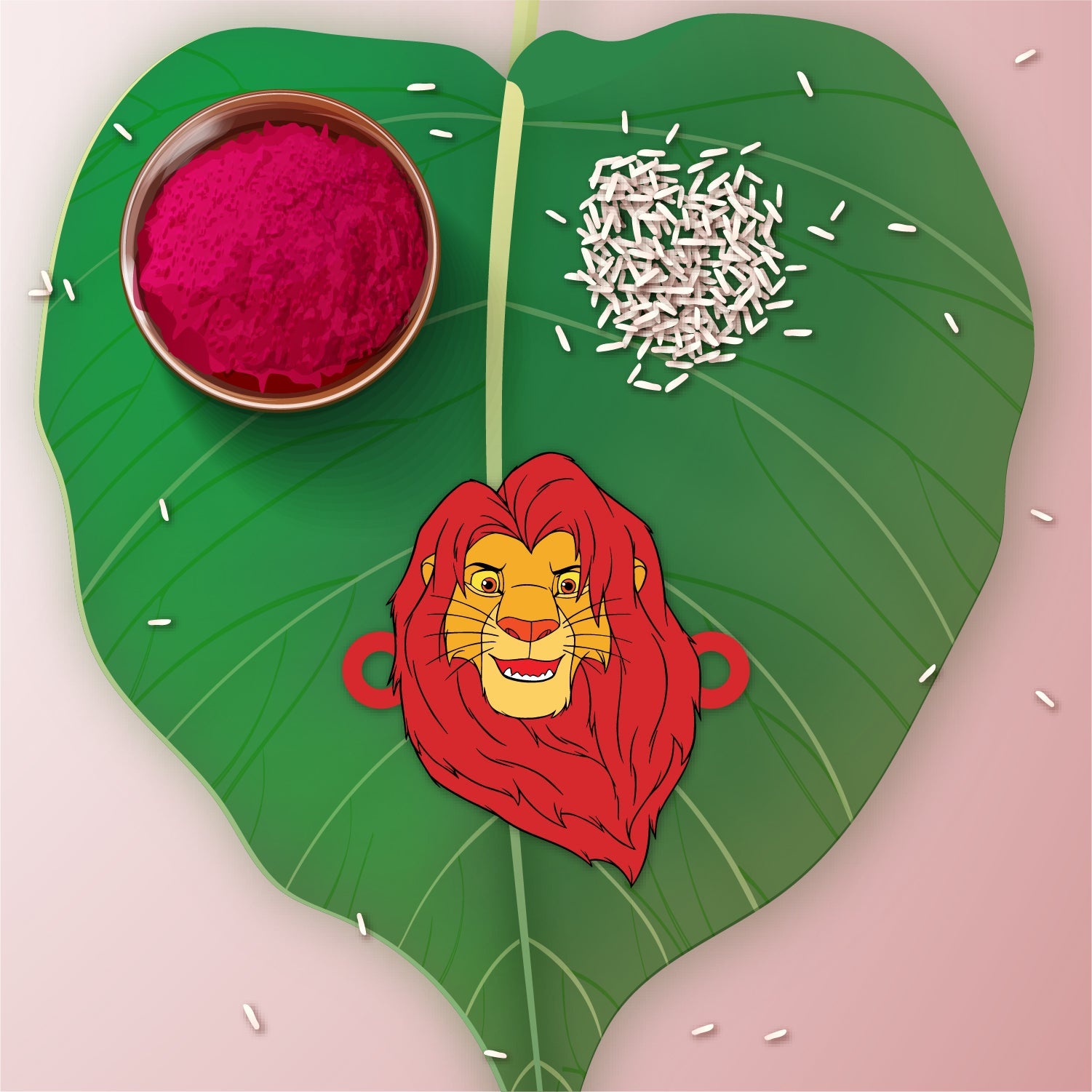 Indianvibez Mufasa Wooden Rakhi with Rudraksha, Lion King Rakhi for Brother, Shop India - Kids Rakhi