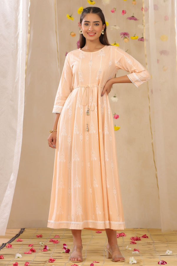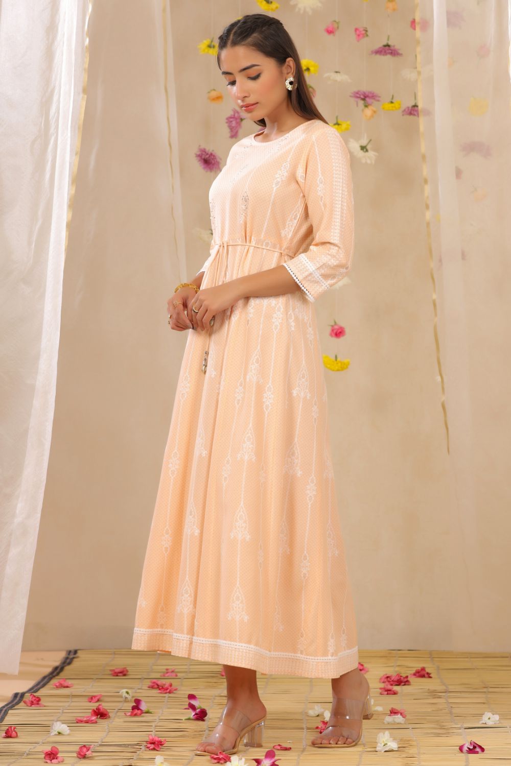 Juniper Womens Peach Rayon Gliter Printed Anarkali Dress Additional Information: Color: Peach Pattern: Printed Product Groups: Casual Fashion ...