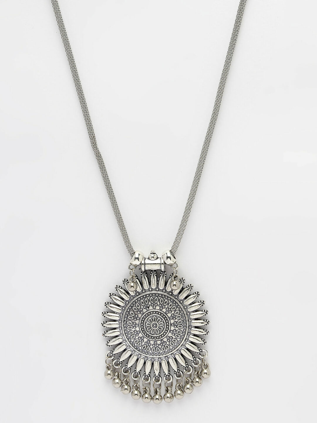 NVR Women's Silver-Toned German Silver Oxidised Pandent Style Note: Enhance your ensemble with the understated elegance of the NVR Women Silver-Ton...