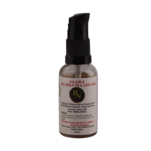 • Saara Kumkumaadi Oil is a traditional herbal formulation known for its potent blend of natural ingredients, primarily derived from saffron (kumkuma). This luxurious oil is infused with a combination of herbs and oils that promote healthy skin and a radiant complexion. Its rich, golden hue and aromatic profile make it a cherished addition to skincare routines.