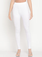Pack of 2 solid ankle-length leggings in white and orange, has an elasticated waistband and slip-on closure