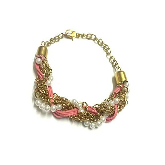 Tiaraa Pink Golden Pearl Charm Bracelet For WomenAbout the Product: Material: Alloy Color:  Pink Design: Bracelet Usage: Casual & Party Care &a...