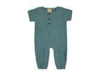 Organic Muslin Cotton girl and boy Full Length Romper With Sleeve. Made of 100% GOTS Certified organic muslin cotton. Rompers with eco-friendly buttons down the front, open leg with snap buttons at the crotch. Comfortable, Easy to wear. Available in a range of colors. It's soft cotton and is easy on the baby.