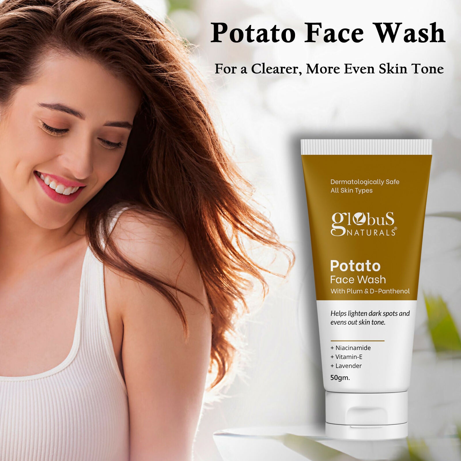 Globus Naturals Potato Face Wash with Plum & D-PanthenolGlobus Naturals Potato Face Wash is a dark spots & evens out skin tone cleanser tha...