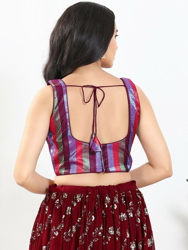 Joban Fashion Wine Multi Brocade Padded Blouse With Square Neck Sleeveless