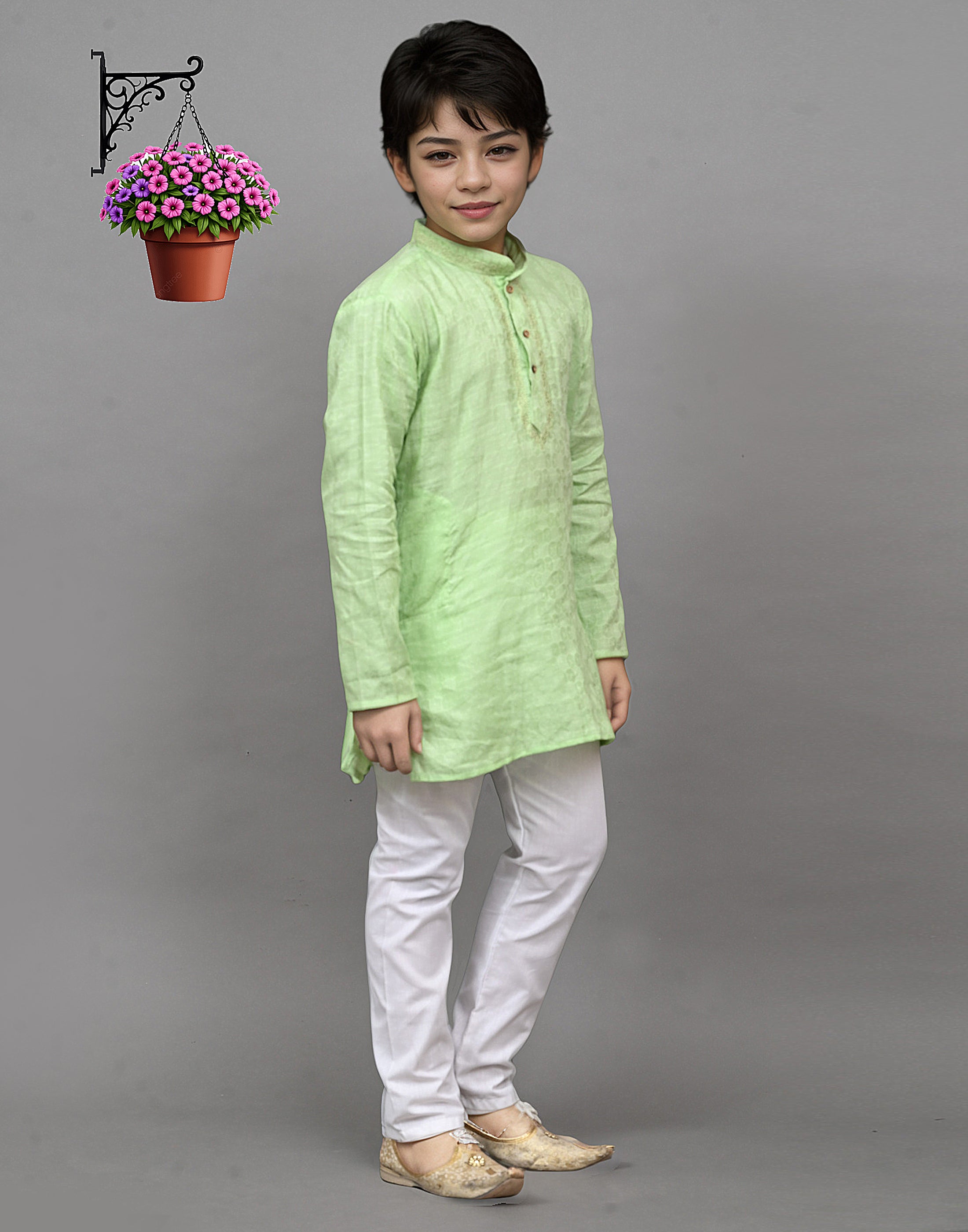 Bluesaanchi Lime Green Self-Design Embroidered Kurta Set – Playful & Festive for Your Little OneAbout the Product: Pack contains: 1 Kurta 1 Pa...
