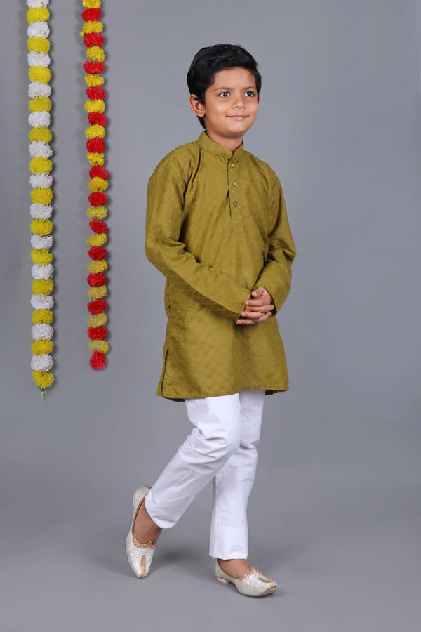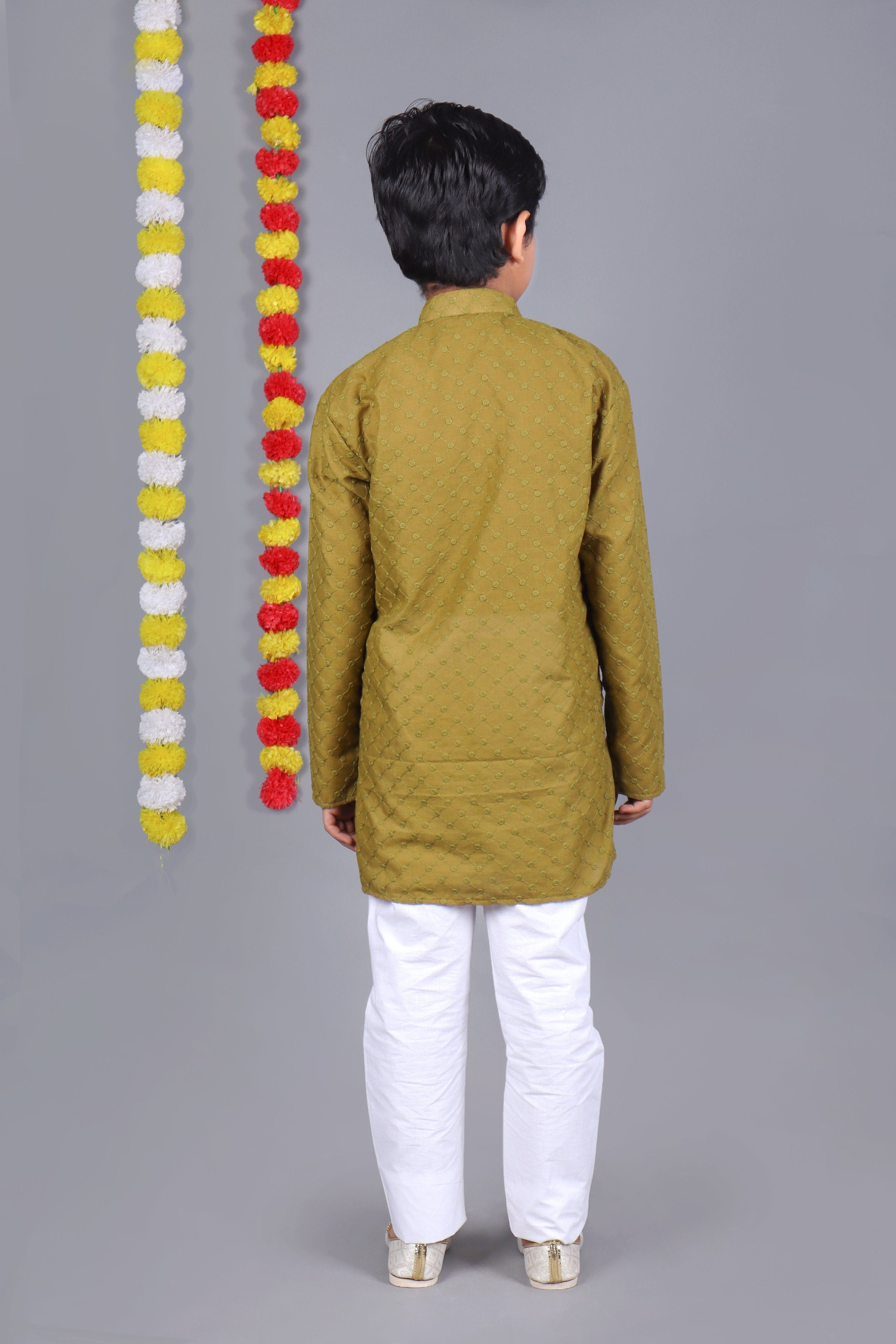 Bluesaanchi Mehendi Green Chikankari Embroidery Kurta Set – Elegant & Classic for Your Little One