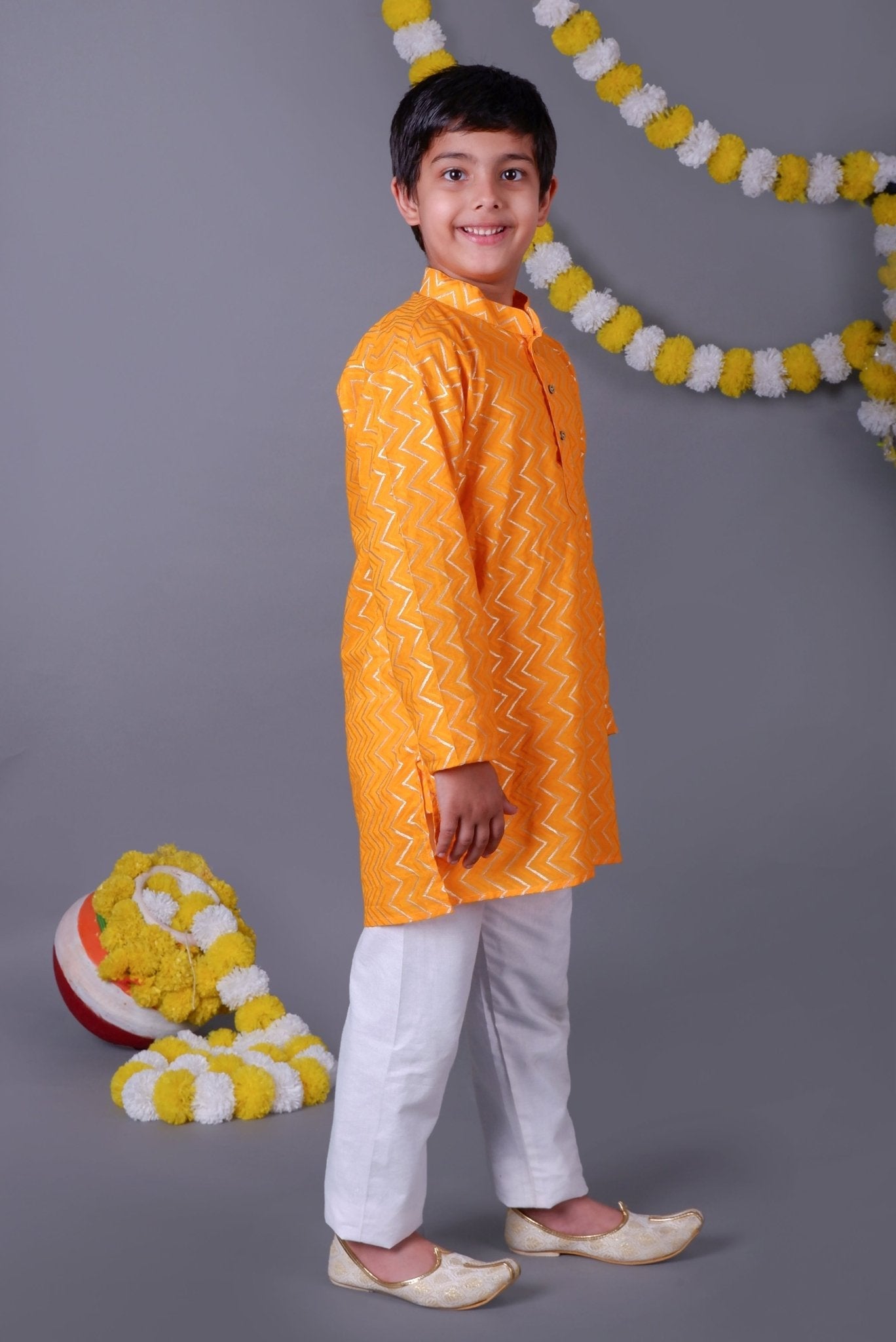 Elevate your child’s festive look with this stunning Yellow Bold Embroidery Kurta Set by Veshbhoshaa. Crafted with style and comfort in mind, this set blends modern trends with traditional flair. Featuring intricate embroidery, the vibrant yellow hue is perfect for special occasions, family events, or just adding a pop of color to their wardrobe. Let your little one stand out with this fresh, fashionable piece!