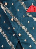 Lil Drama Stylish boys jamavar printed kurt pyjama with jacket set- Teal Blue