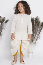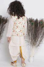 Little Bansi Banarsi Floral Embroidery Jacket With Cotton Kantha kurta And Kantha Dhoti - Cream Additional Information: Color: Cream Gender: ...