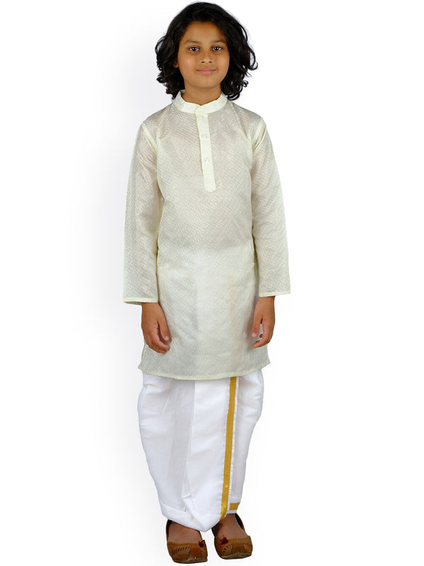 Sethukrishna Boys Cream & White Coloured Kurta with Dhoti Pants