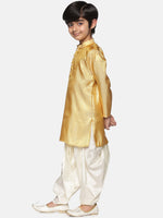 Sethukrishna Boys Gold-Toned & Off White Woven Design Kurta with Dhoti Pants