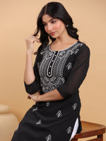 Janasya Black Weightless Georgette Embroidered Kurta - XS