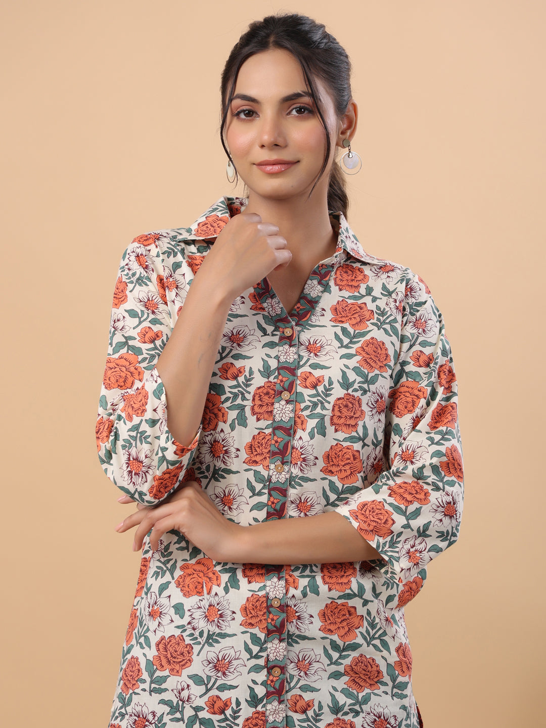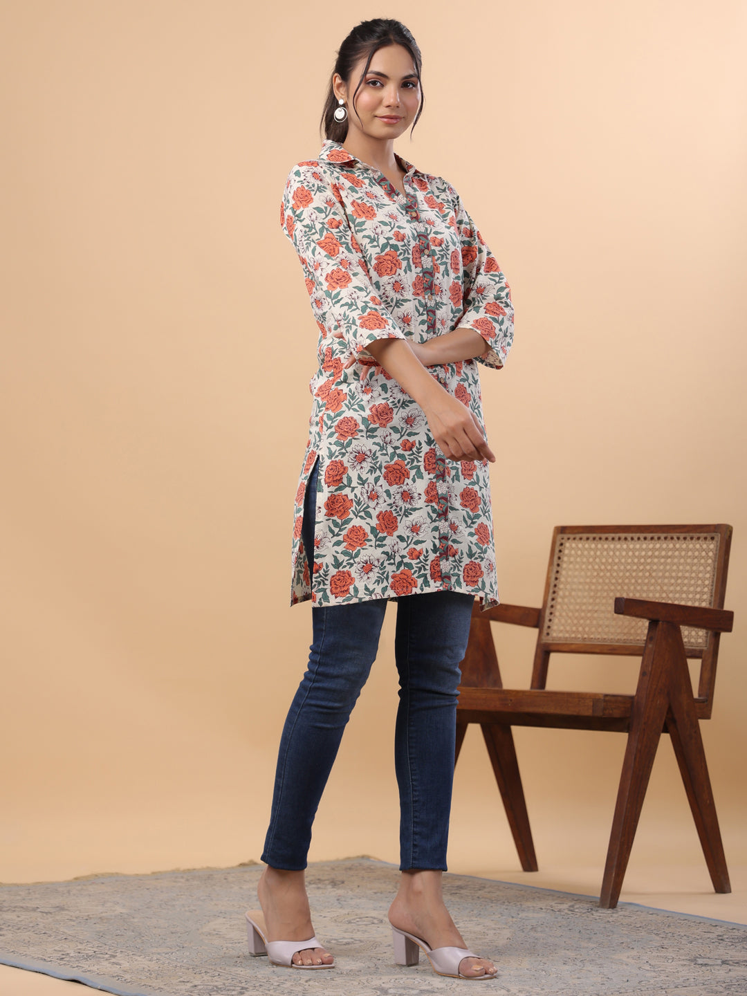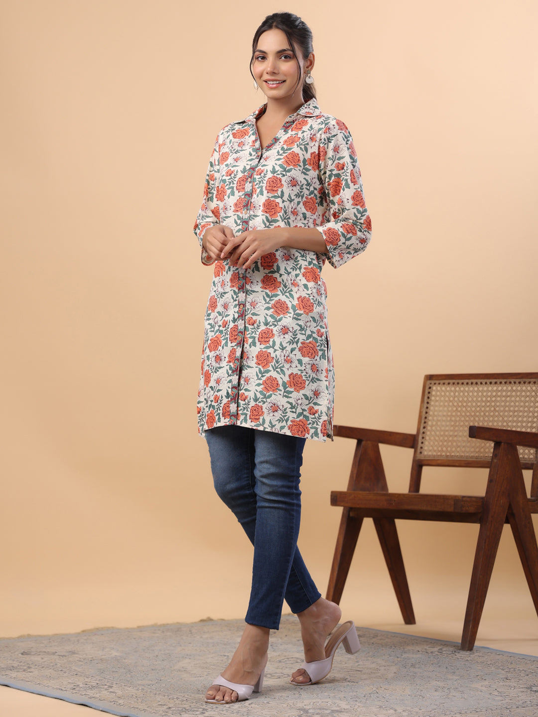 Janasya Cream Cambric Floral TunicAbout the Product: Top Style Type: Regular Top Fabric: Cambric Top Primary Color: Cream Top Pattern Type: Flo...