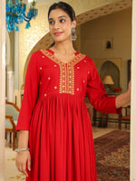 Janasya Maroon Rayon Embroidered Kurta & BottomAbout the Product: Top Style Type: Gathered Top Fabric: Rayon Top Primary Color: Maroon Top ...