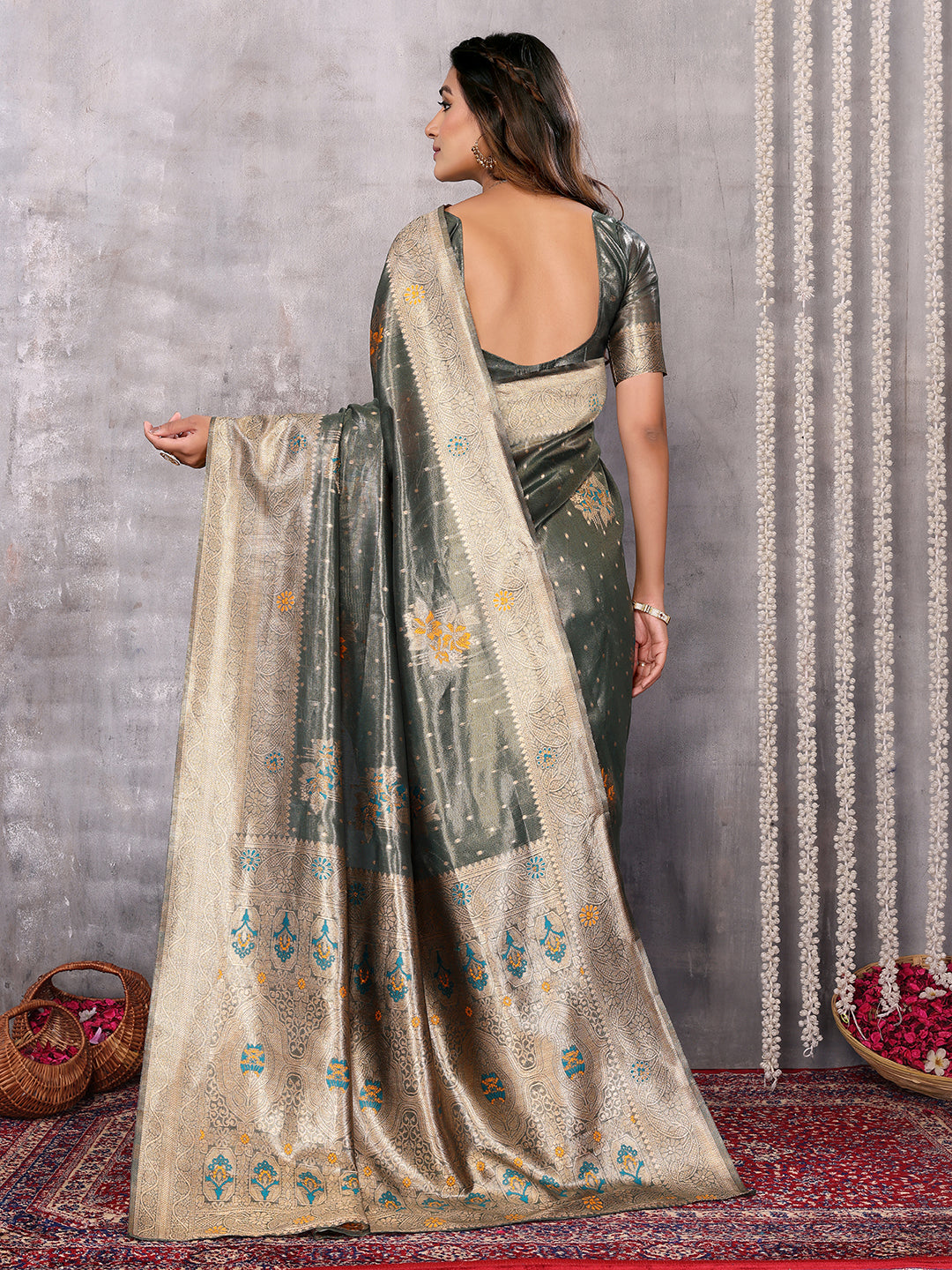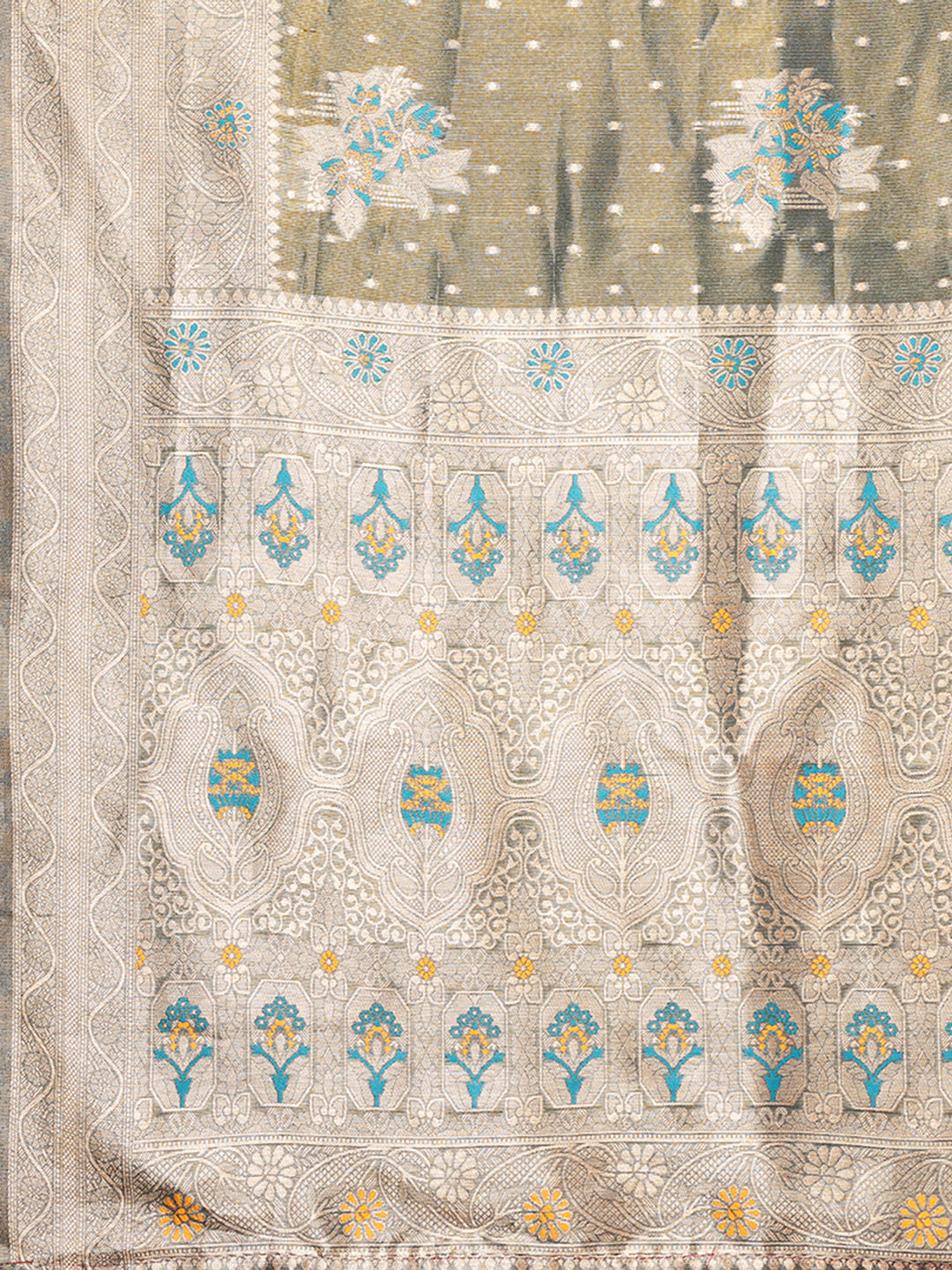 Janasya Olive Silk Blend Ethnic Motifs Banarasi Saree